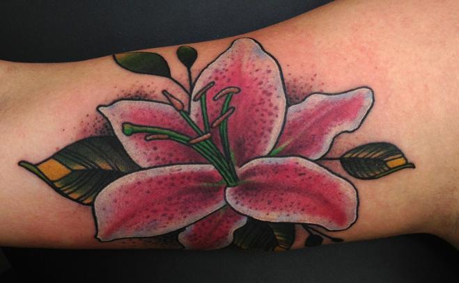 Lily Flower Girl Arm Color Pink Floral Tattoo By Jon Von Glahn Tattoonow